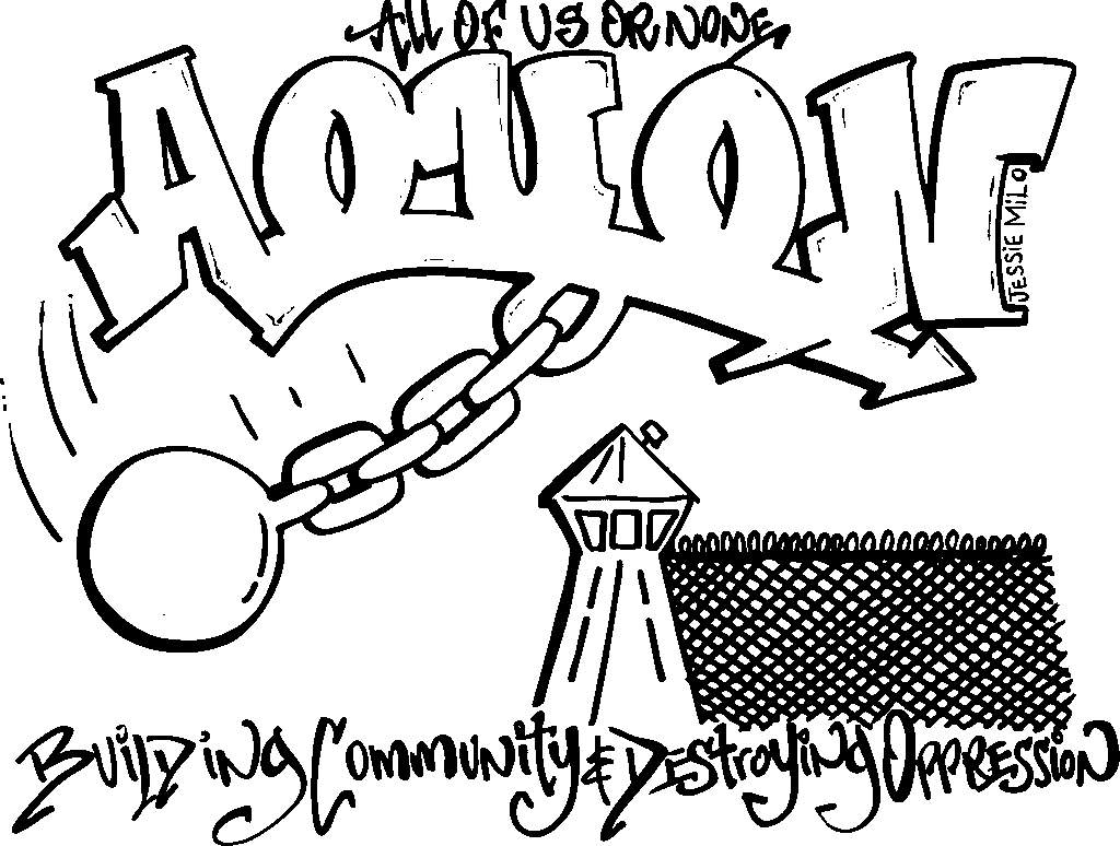 We invited AOUON members to create art for the t-shirt of our national convening. The winning design was created by Jessie Milo, an AOUON member and incarcerated artist. We had amazing submissions, and we thank you all from the bottom of our heart for all of the time and care you put into your designs.